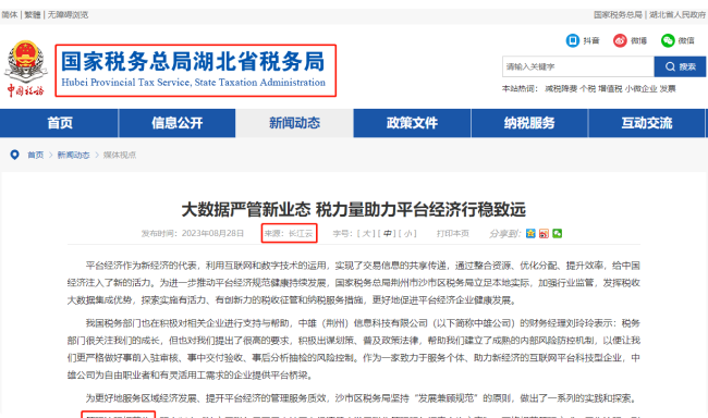 中雄被湖北省税务局、湖北官媒长江云点名表扬啦!