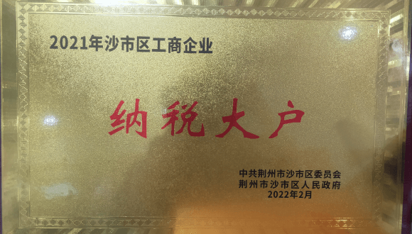 喜报!中雄被评为2021年沙市区纳税大户!